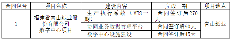 福建省青山紙業(yè)股份有限公司數(shù)字中心項(xiàng)目進(jìn)行公開招標(biāo)?,F(xiàn)歡迎合格投標(biāo)人對(duì)該招標(biāo)項(xiàng)目進(jìn)行密封投標(biāo)。