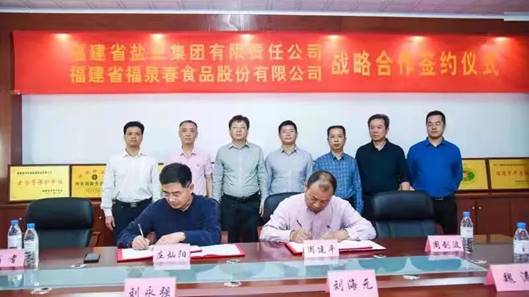 2021年3月30日,福建鹽業(yè)集團有限責任公司與福建福泉春食品股份有限公司建立戰(zhàn)略合作關(guān)系的簽約儀式在福泉春廠部舉行。福鹽集團總經(jīng)理莊燦陽代表集團簽約。省工信廳,永春縣政府相關(guān)部門領(lǐng)導(dǎo)出席并見證簽約儀式。